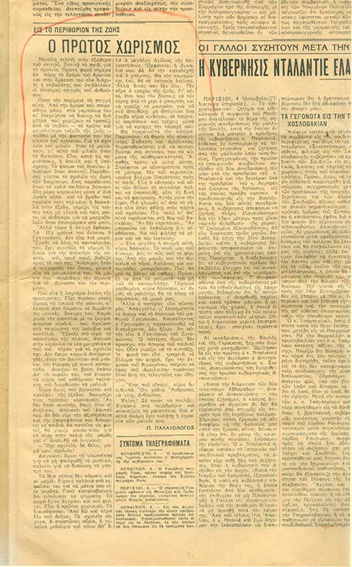 Προχθές στείλαμε τα επισκεπτήριά μας στον άγνωστό μας χρονογράφο του Ελευθέρου Βήματος κ. Π. Παλαιολόγο για ένα χρονογράφημα που πολύ πάλι μας συγκίνησε. Σήμερα έλαβα μια κάρτα του που δείχνει πως χάρηκε, αλλά που κ’ εμένα πολύ με συγκίνησε. Να τι του έγραφα.