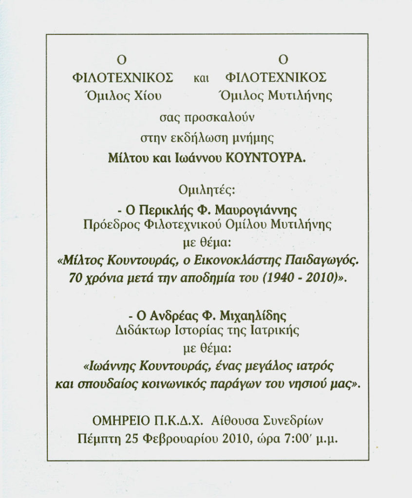 Μνήμη Μίλτου και Ιωάννου Κουντουρά, Χίος 2010